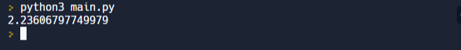 5에 1/2제곱이니까 루트 5가 되네요 근삿값인 다음 값이 출력됩니다!