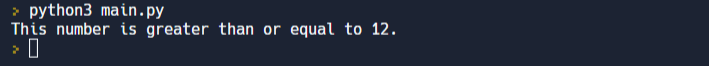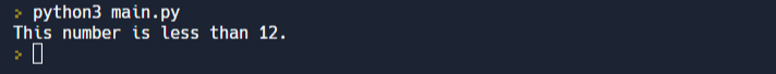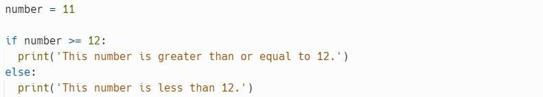 조건을 만족하지 않을때 '이숫자는 12보다 작습니다'를 출력하는 else코드를 작성해보겠습니다.