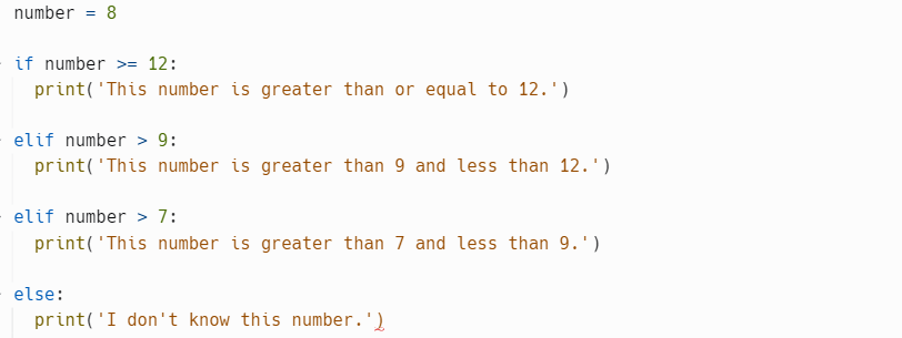 이번에는 number 변수를 8로지정하고 7보다 클 때 실행되는 조건을 하나 더 추가해볼게요!