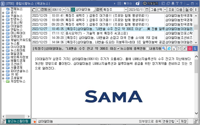 알루미늄은 지난번 활용법 2에서 다룬 것처럼 관심종목에 등록해 두었다가 스멀스멀 올라오는 기미들이 보여서 관심섹터로 주목하고 있습니다!