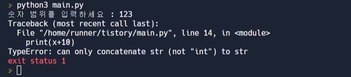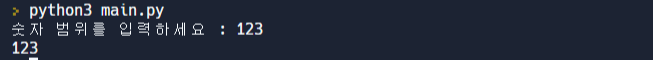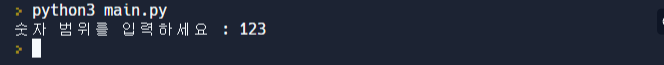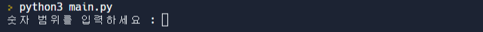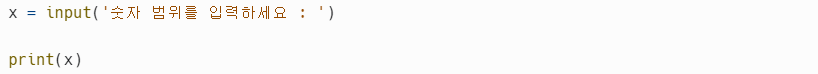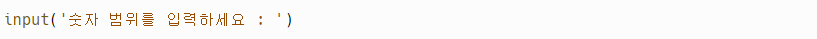 그렇다면 문자열 '숫자 범위를 입력하세요'를 적고 실행해보겠습니다!