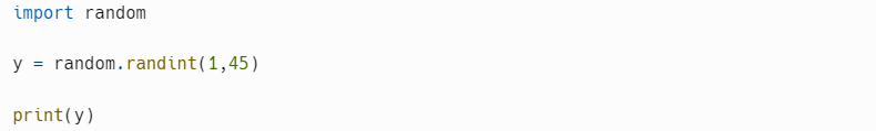 randint 함수를 써서 1~45 사이 중 랜덤한 정수를 호출하는 코드를 작성 해봐요.