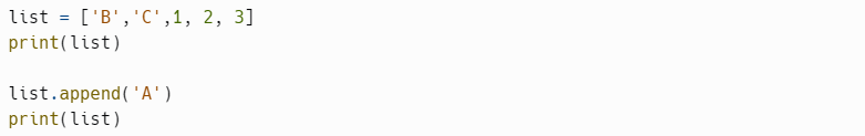 2) list.append('A') "list 안에 'A' 를 추가해라"예를들어