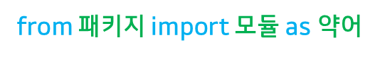 패키지로부터(from) 특정 모듈을 들여오고 (import) 약어로 어떻게 이용하겠다.(as)
