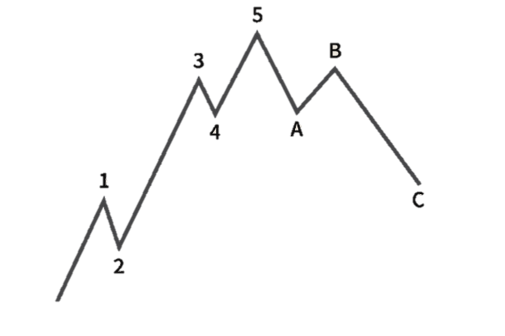 엘리어트 파동은 다음과 같이 상승시 1~ 5파동으로 구분하고 하락시 A~C 파동으로 구분 할 수있습니다.
