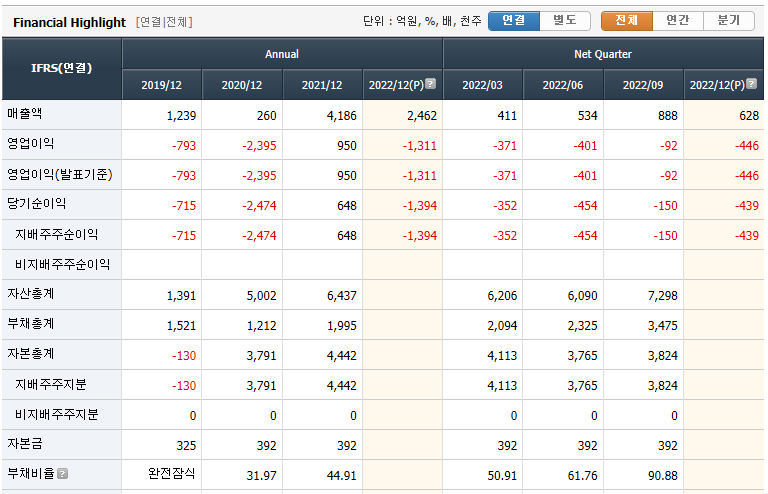 연결재무제표를 확인하면 2021년 대비 2022년 잠정실적은 영업이익 1311억 적자이고 부채는 늘고있으니 유럽에 실제로 판매되는 시점에 매출을 확인해야겠습니다.