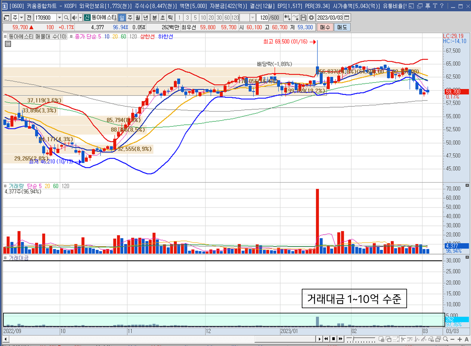 동아에스티의 시가총액은 코스피 종목치고 낮은 5134억으로 형성되어있네요.