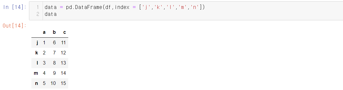 Series 자료 구조와 동일하게 index를 사용자 임의로 변경 할 수도 있어요!