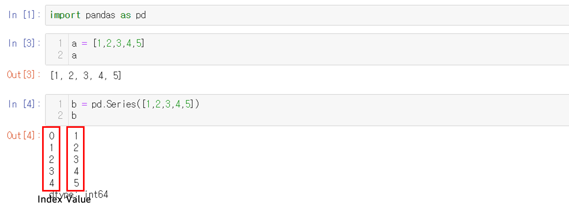 pd.Series( [x1,x2,x3...]) #Series 앞글자 대문자로 표기