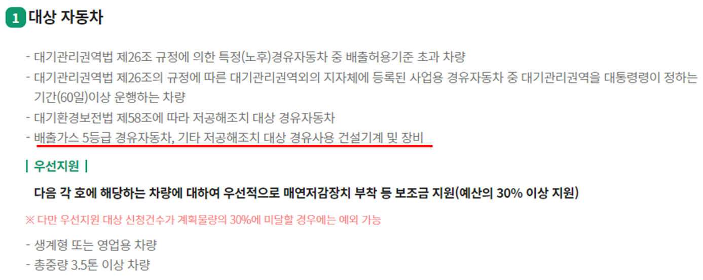 i ) 촉매시스템 사업인 자동차 매연 저감 장치 사업이 메인 사업으로 보이네요 매연 저감 장치 설치기준은 아래와 같습니다.