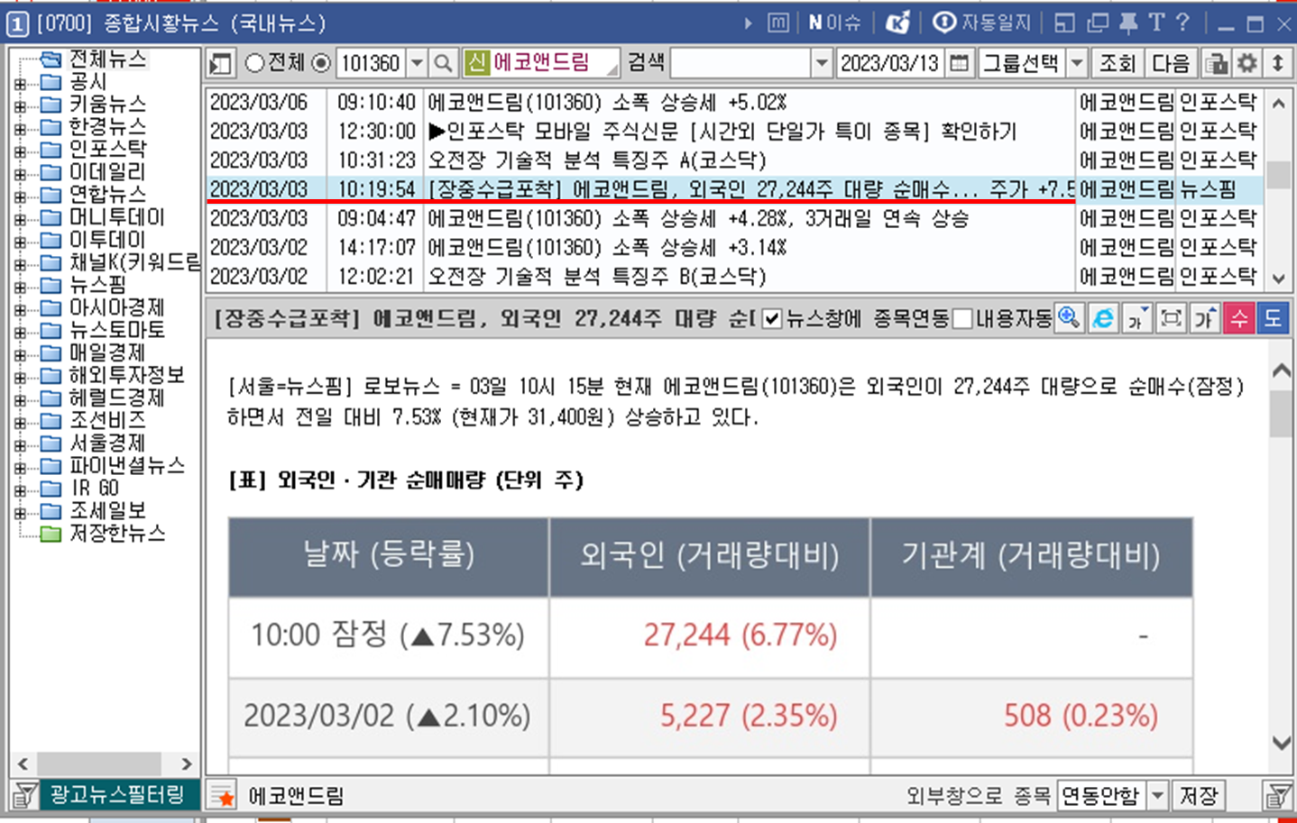 오늘은 지난번에 랜덤으로 선택된 종목 중 "에코앤드림"이라는 종목을 분석하려고 가져왔습니다!