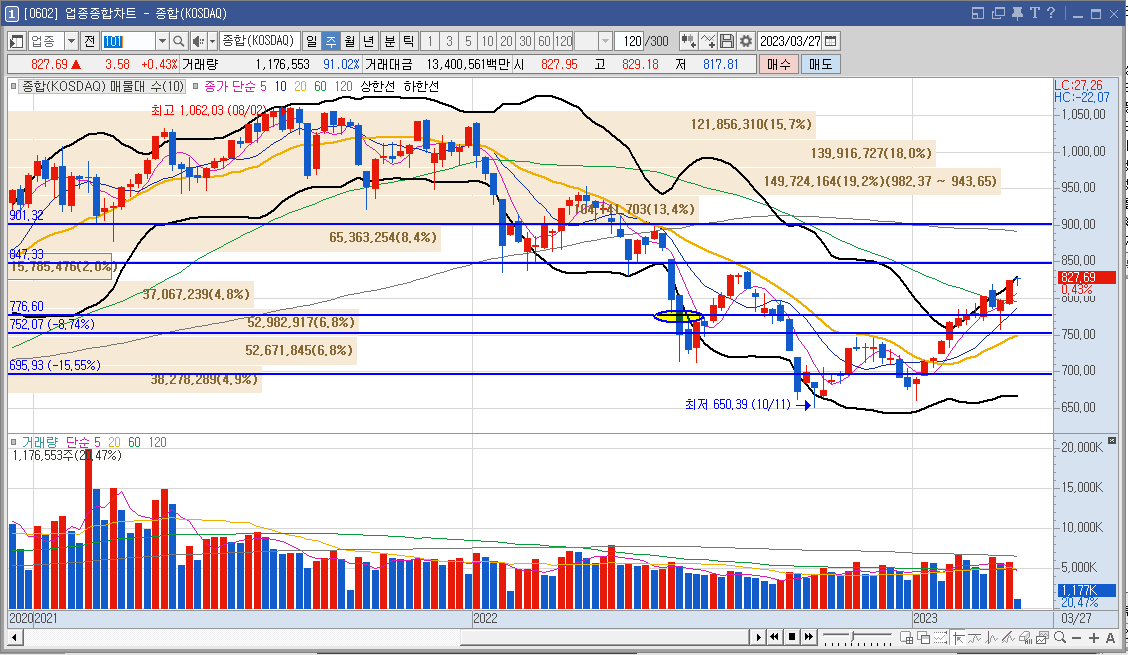 추가적으로 850선부근으로 왔을 때 흐름, 혹은 이번주 주봉 마감까지 봤을때 기술적으로 안정적인 상승기울기를 보여주어야 탄력을 받아 상승 할 수 있겠습니다. 이번주 마감시 한번 더 확인해보도록해요 !