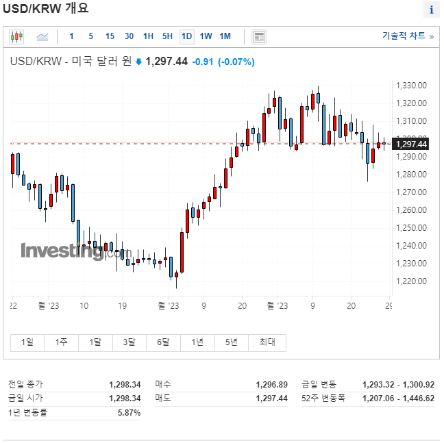 원달러 환율은 한국과 미국의 금리 차이로 인해 원화를 달러로 바꿔 더 마진이 좋은곳에 투자하려고 하는 성향들 때문에 상승했다고 볼 수도 있겠습니다.