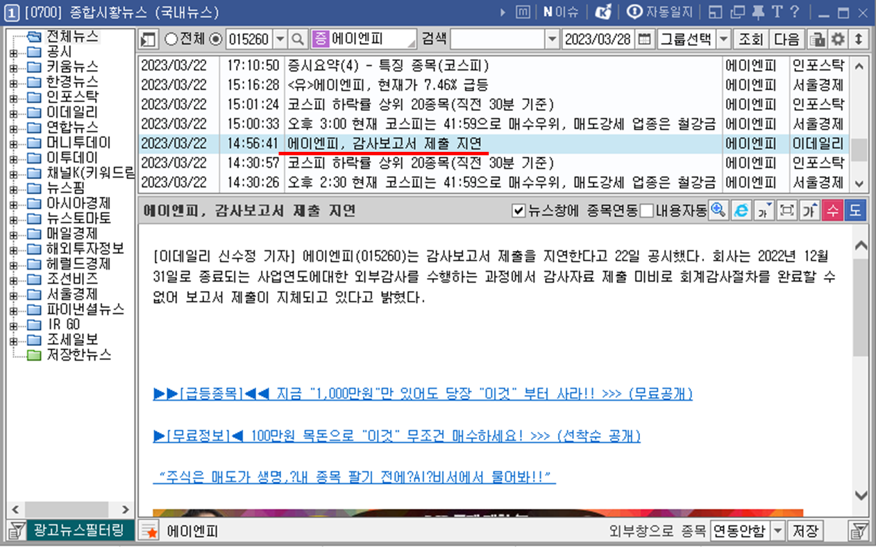 두번째 뉴스로는 최근 감사보고서 제출이 지연되고 있다는 뉴스가 있네요.