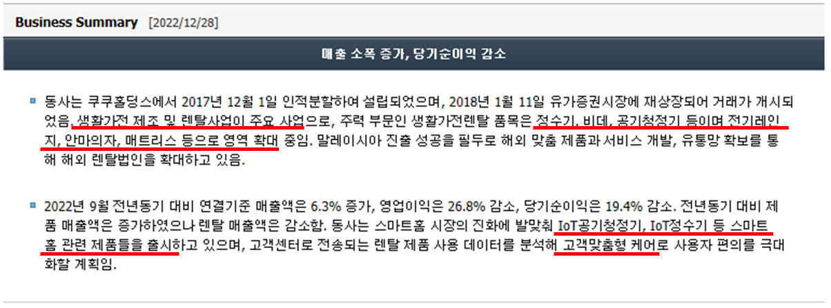 오늘은 지난번 코스피 랜덤종목으로 선택된 "쿠쿠홈시스"라는 종목에 관해 알아봐요😊