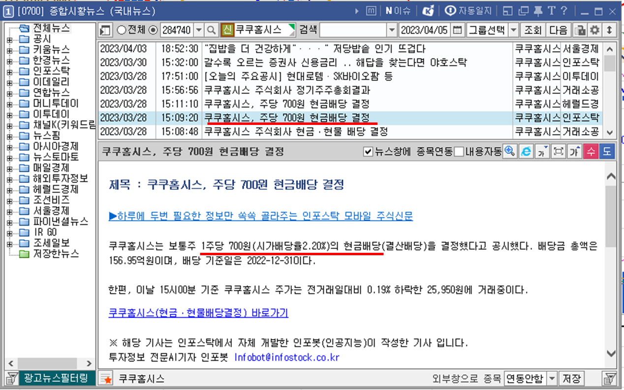 종합시황을 확인해보면 2022년 12월 31일 기준으로 갖고 있었던 주주들에 한해 700원 (2.20%)의 현금배당을 하기로 결정했다고 공시했네요! 이러한 종목들은 굳이 매수를 한다면 은행 금리가 배당 비율 보다 떨어지면 적금(?)을 든다는 생각으로 매수하는 방향 밖에 없겠네요😥