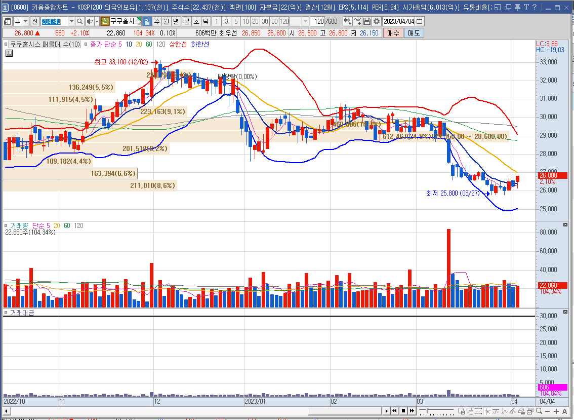 오늘은 밥솥인줄 알았던 쿠쿠의 다른 사업인 쿠쿠홈시스라는 렌탈 사업을 하는 종목에 관해 알아 봤는데요. 개인적인 생각으로는 1인 가구의 상승, 매매에서 월세/전세로 주거의 형태의 전환이 가속화 되어야만 큰 상승이 나올 수 있겠습니다. 매우 장기적으로 봤을 때는 당연한 흐름인듯하나 현금이 묶여있는것을 싫어하는 저의 입장으로는 매수하지는 않을 것 같습니다.