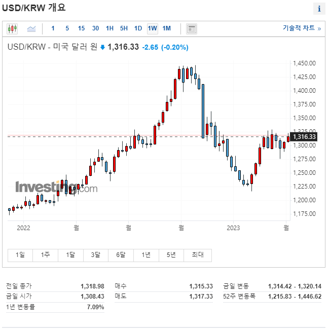 2) 나스닥 & 원달러 환율 (주봉차트)