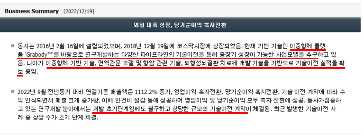 그런의미로 특정 이중항체를 하나 만들어 기술 수출을 하고 이 기술을 취득한 다른 기업은 앞서 언급한 바와 같이 다양하게 활용 할 수 있다는 점에서 수익 측면에서도 파이프라인 역할을 제대로 할 수 있는 기술인 것 같습니다.