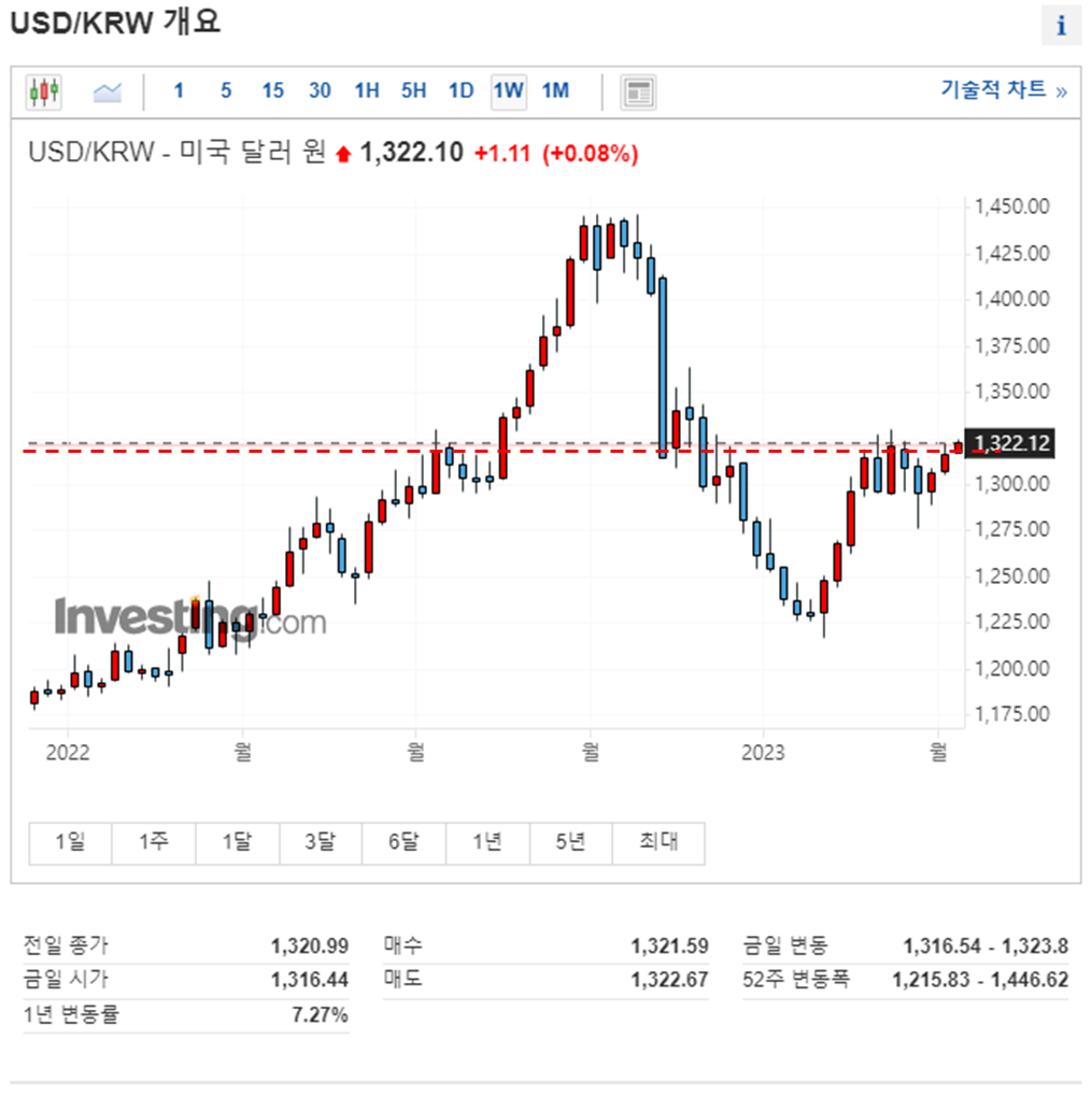 2) 나스닥 & 원달러 환율 (주봉차트)