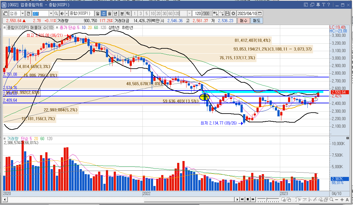 최근 삼성전자 감산이슈 현대기아차 호실적으로 인해 주가 2500을 가볍게 돌파하는 모습을 보여주고 있습니다. 다음 매물대인 갭하락 부근인 2575를 넘을 수 있을 지 기대됩니다. 개인적인 의견으로는 너무 가파른 상승보다 횡보정도 해주면서 매물을 소화해주었으면 좋겠네요.