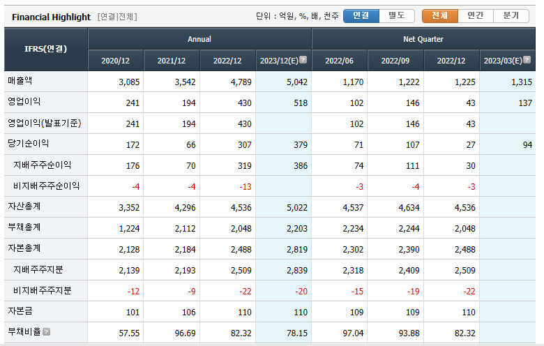 연결재무제표를 확인해보면 실제로 2020년 ~2021년 펜데믹 때 보다 엔데믹 이후 실적이 매우 개선 된 것으로 보입니다.