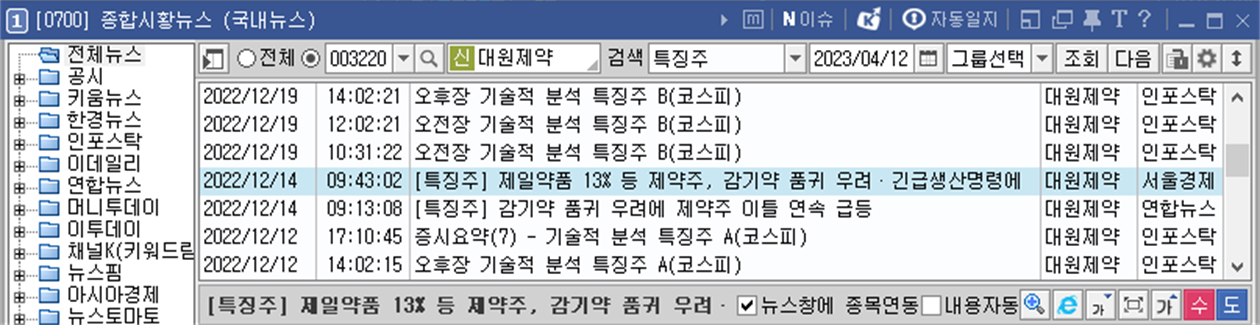 제약회사는 타 업종 대비 가능성을 기반으로 대박/ㅈ망 두 가지로 나누어지니 기대값이 주가에 반영되어 전반적으로 높은 PER 수준을 유지합니다. 대원제약이 낮은 같은 섹터대비 낮은 PER을 유지하는 것은 뭔가 기대될 만한 것이 없다는 뜻인데 아래 종합 시황 뉴스를 보고 파악 해보도록해요🤔