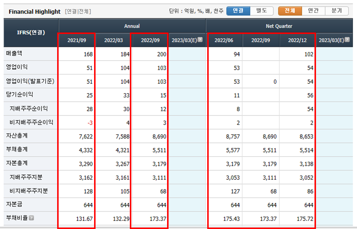 재무제표도 뭔가이상하게 나와있네요. 왼쪽 Annual 창에 분기별 실적이 표기되어있고 NetQuarter 란에 9월은 0으로 나와있는 구조네요. 리츠업계 특성인지는 다음에 리츠 회사 추가 분석 시 확인 해보도록 하겠습니다. 2021년 9월 2022년 9월끼리 만 비교해봤을 때, 영업이익은 2배 증가했으나 당기순이익은 감소한 모습입니다. 부채증가와 더불어 이자 부담까지 가중이 되어 영업 외 비용이 많이 발생한듯합니다.