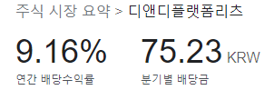 오늘은 코스피 랜덤 종목 분석으로 디앤디플랫폼리츠라는 회사에 관해 알아봤는데요. 최근 부동산 경기 냉각으로 인해 부동산 펀드 수익률 악화 업 특성상 성장 가능성이 높지 않은 회사이기 때문에 개인적으로는 관심종목에 넣지 않을 생각입니다. 리츠 관련 종목 특성상 배당은 많이 지급하기 때문에 배당을 노리는 투자자시라면 매수해도 좋을 것 같습니다. 배당 수익을 보니 9.16%나 되네요😮