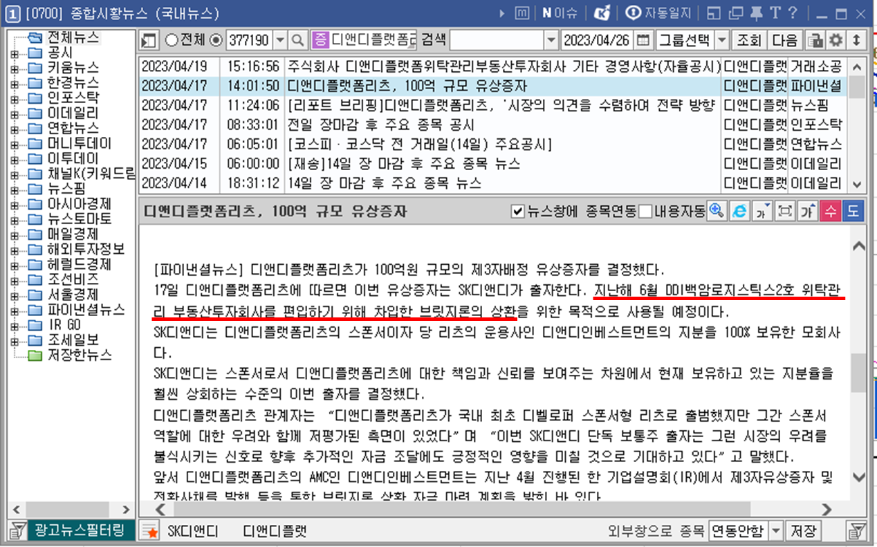 오늘은 새로운 코스피 랜덤 종목으로 검색된 "디앤디플랫폼리츠" 라는 종목에 관해 알아보도록 하겠습니다.😊