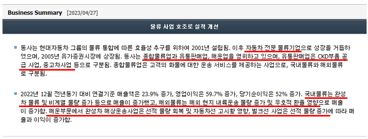 현대글로비스는 요약하자면 현대차 그룹에서 만든 자동차나 부품을 운송하고 벌크선을 운영하여 물류등을 조달하는 역할을 하는 기업이라고 볼 수 있습니다.