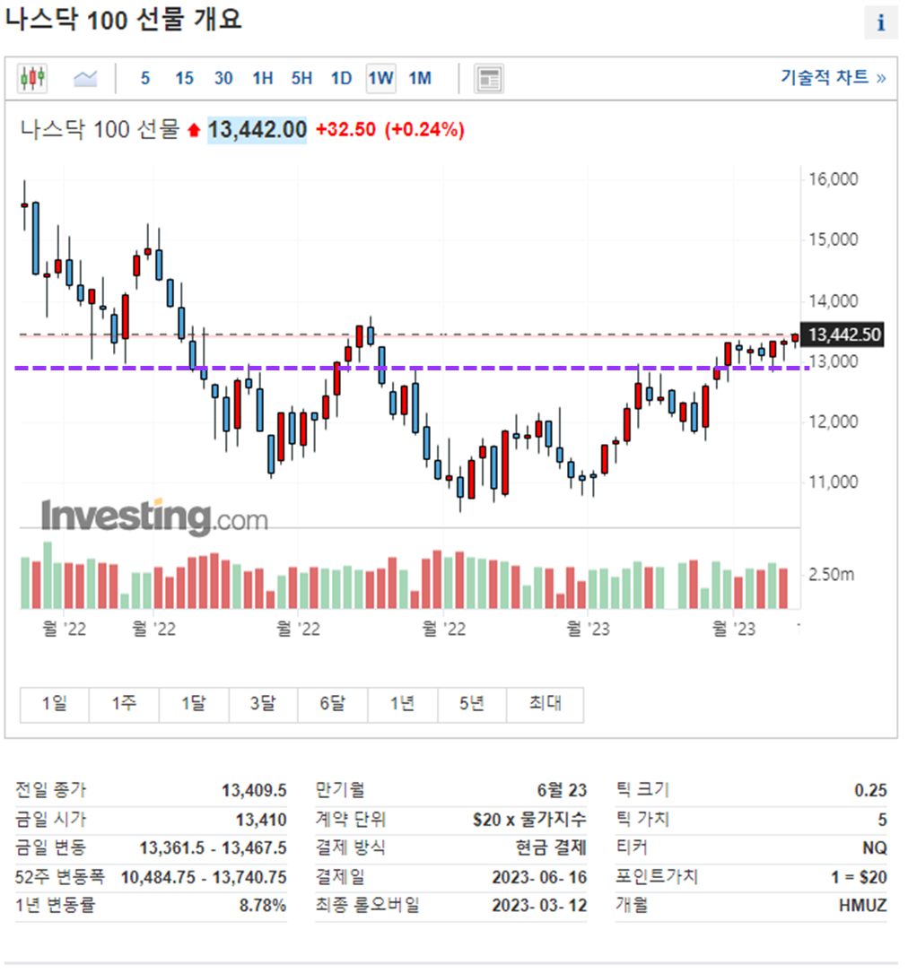 2) 나스닥100선물 & 원달러 환율 (주봉차트)