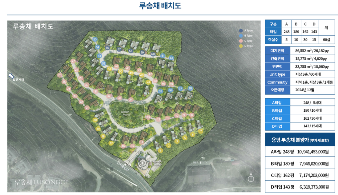 앞에 글에서 콘도 분양사업을 한다길래 아파트 분양도아니고 어떤것인가 했는데 용평리조트에서 지은 콘도를 회사 복지나 연수원으로 분양을 받아 이용한다고 하네요. 아래는 프리미엄 콘도 루송채 분양가격입니다. 루송채의 제일 넓은 평수는 110억 가량하네요.😮 한가지 아쉬운점은 루송채나 케이블카나 홍보목적으로 예쁘게 사진 찍어 놓은것이 별로 없네요. 공식 홈페이지도 옛날에 만든것 같고 상장회사라고하기에는 약간 실망스러운 홈페이지 퀄리티네요.