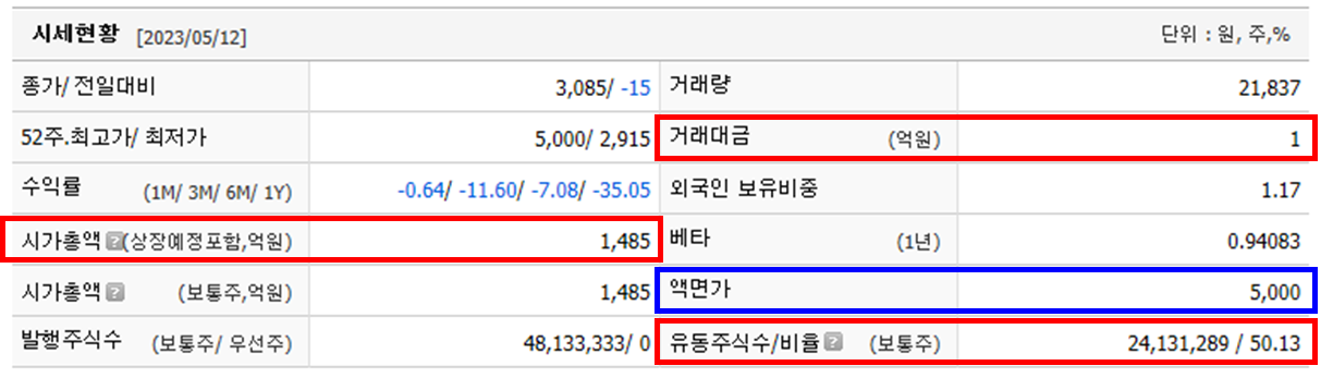 용평리조트에 시세현황입니다. 시가총액 1485억원으로 거래량 증가 시 주가의 등락이 심할것으로보여 매수 할 때 주의 하셔야 합니다. 마지막 거래일 기준 거래대금은 1억, 유동비율은 50%로 시장에 관심도가 매우 떨어져 있습니다. 앞서 말했던 경기 둔화로 인한 투자처로써 매력이 많이 떨어져 있는 것 같네요. 한가지 또다른 특징으로는 액면가 대비 현재 주가가 많이 떨어져 있습니다. 액면가란 투자자로 부터 돈을 모을 때 투자자들이 얼마를 투자했는지 증거로 작성해두는 1주 당 표면 가격입니다. 정상적인 구조상으로는 현재 주가가 액면가 대비 높은것이 정상이며 액면가보다 현재 주가가 낮은 경우에는 재무구조가 취약하거나 적자가 지속되고 있는 기업입니다. 주가가 액면가의 20% 미만인 경우 상태가 30일간 지속되면 관리 종목으로 지정되고 지정된 이후 90일내 액면가의 20%이상의 주가를 회복하지 못하면 상장 폐지된다고하네요. 용평리조트의 경우 가격이 1000원 밑으로 떨어지면 관리 종목으로 지정이되겠네요.😯 아직 안심 할 수준이라고 생각하실수 있으나 액면가대비 낮은건 다 이유가 있을테니 주의해야겠습니다.