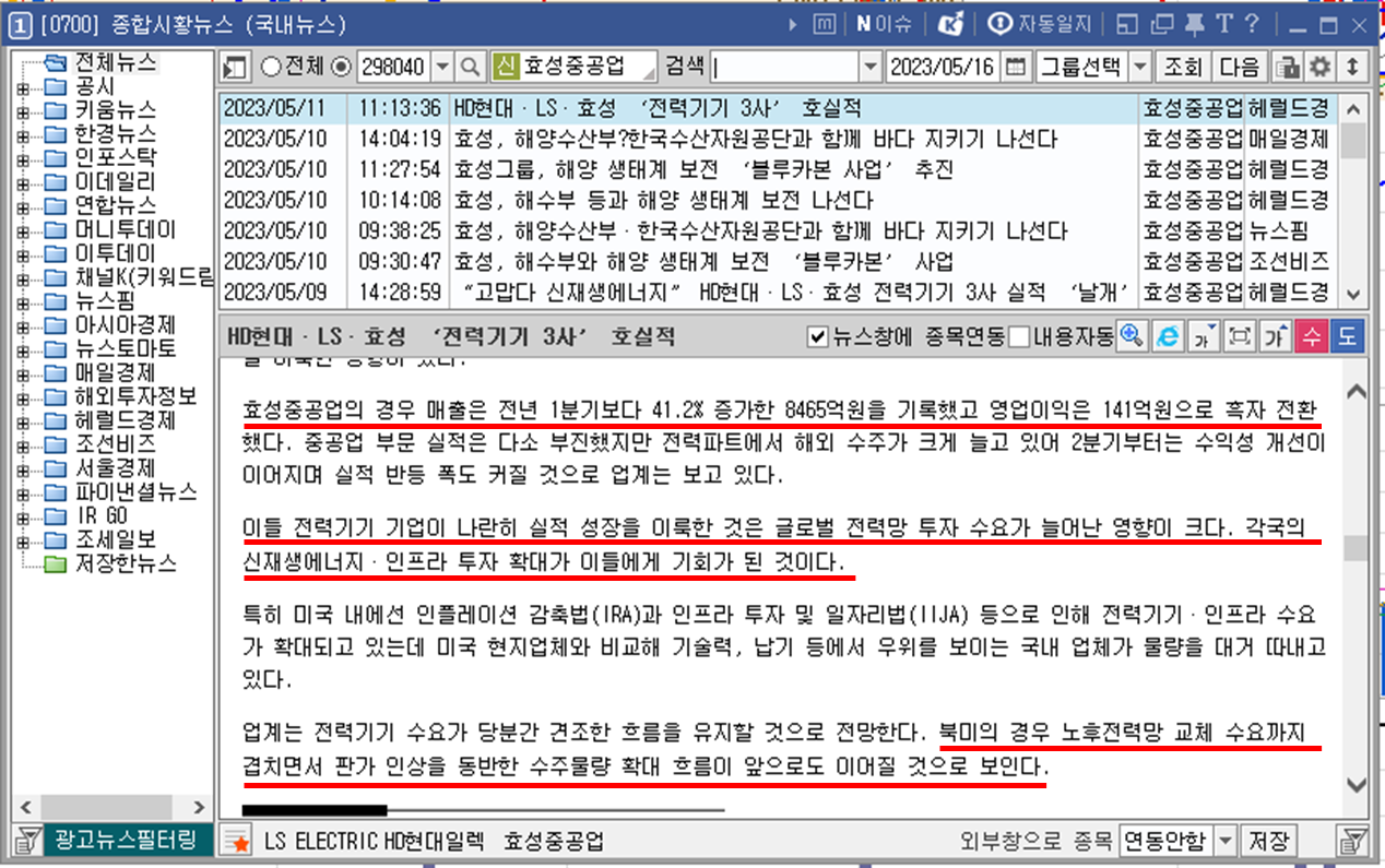 종합 시황 뉴스를 보면 각국의 신재생 에너지, 인프라 투자가 확대됨에 따라 전력기기 수요가 증가하고 특히 미국에서 노후 전력 망 교체 사업으로 변압기 등의 전력기기 수요가 증가하고 있다고 하네요. 효성중공업에 호재로 작용하는 부분이 있지만 효성중공업 독점 사업은 아니기때문에 조금 더 전문성이 있어 보이는 다른 두 곳에 업체에 눈이 가네요.😪