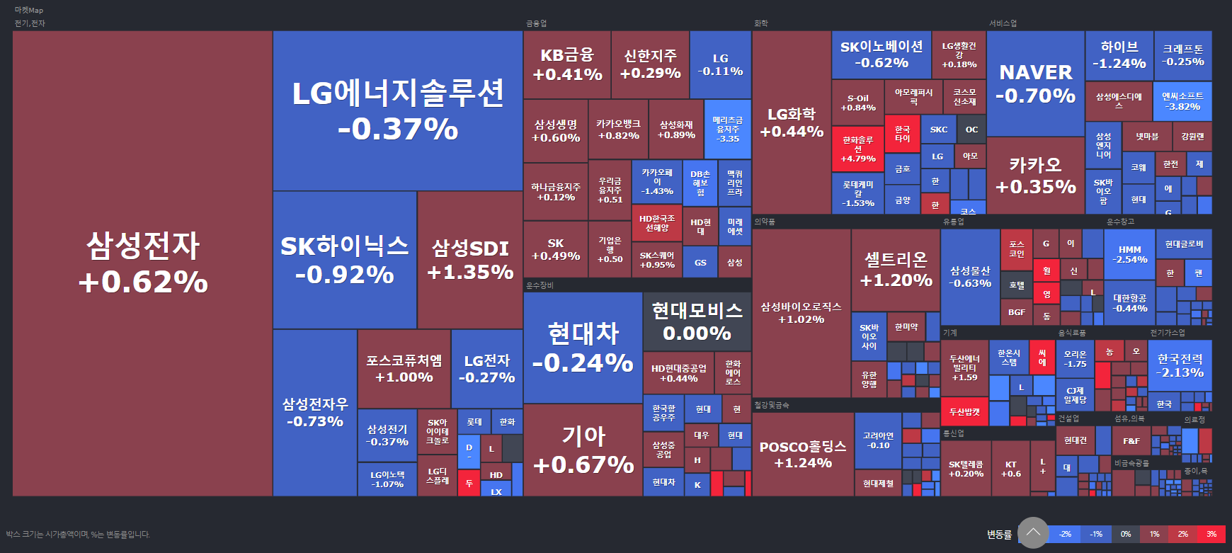 시총 상위 기업 중 특별하게 어떤 섹터가 주도하여 강보합으로 마감한것은 아니고 전 업종에 걸쳐 개별 종목으로 일부 상승하고 일부 하락하는 하루였습니다. 뭔가 일어나기 전 고요한 상황 같이 불안한 기운이 엄습해오네요. 역시 시장은 호재 악재보다는 불확실성을 더 싫어하는 것 같습니다.🤔