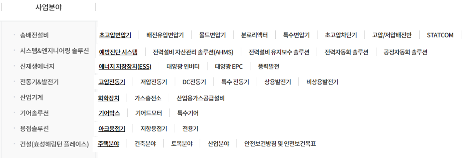 효성중공업 공식 사이트 내 사업분야를 보면 제조업에 필요한 모든 설비를 다 커버 할 수 있는 회사네요. 안하는 걸 찾기가 더 어렵겠네요.😮