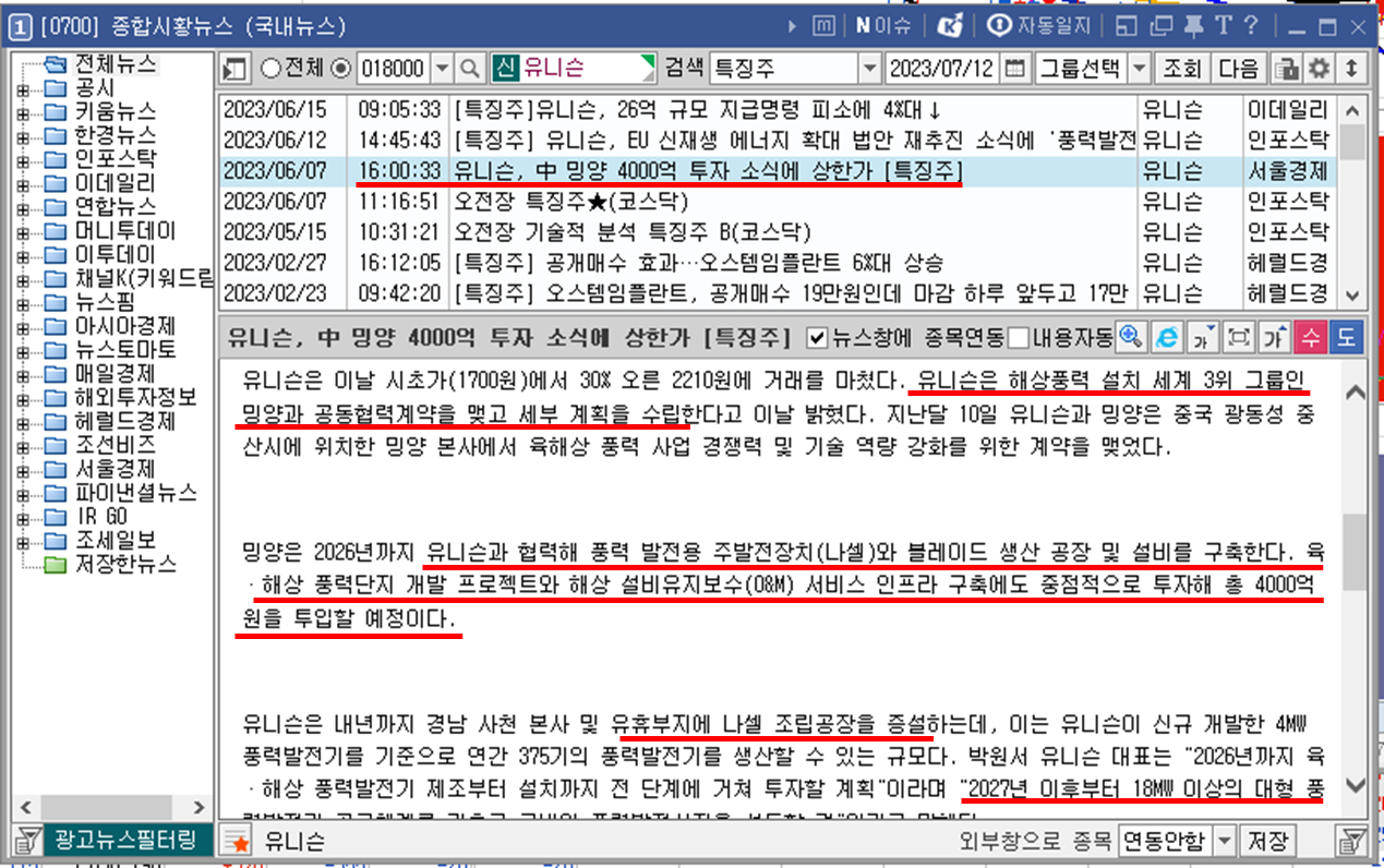 안녕하세요 이상한 날씨에 연속입니다. 어제는 비가 온다고 헀는데 날씨가 너무 좋았고 오늘도 왠지 그럴 것 같아서 우산도 작은 우산에 레인부츠도 신고가지 않았는데 폭우가 쏟아지는 날씨였네요. 마치 주식 시장과 같이 "어제도 그랬기 때문에 오늘도 그럴것이다" 라고 함부로 유추하지 말아야겠습니다. 오늘은 풍력 관련주인 "유니슨"이라는 종목에 관해 공부해보도록 하겠습니다.