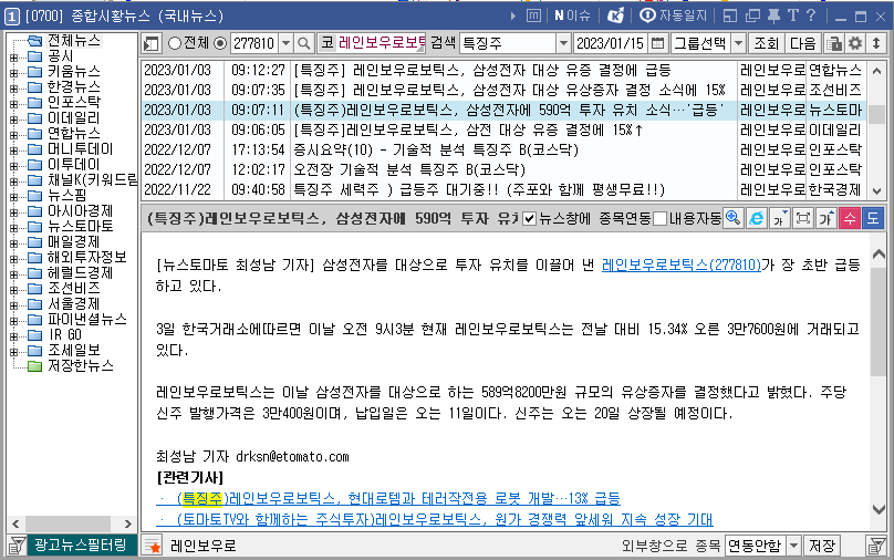 [1월 3일 레인보우로보틱스 종합시황뉴스]