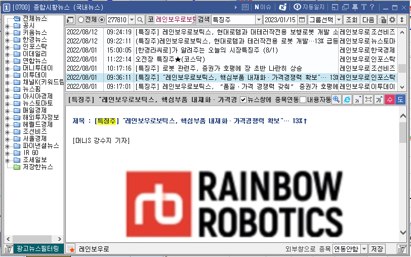 [레인보우로보틱스 종합시황뉴스]