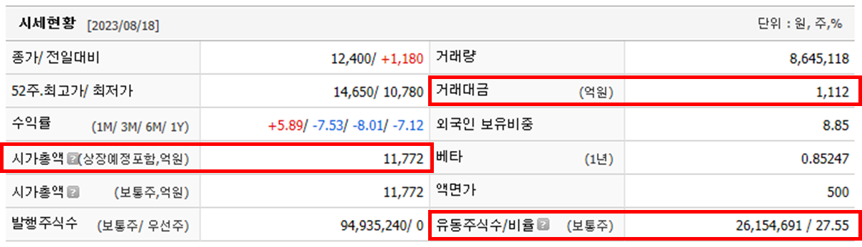"한국앤컴퍼니"의 시가총액은 약 1조1800억, 최근 거래일 기준 거래대금은 1112억, 유동 주식 비율은 27.55%입니다. 1000억 이상의 거래대금이 몰렸다는 것은 시장에서 관심이 많이 가고 있다는 뜻이니 어떤 원인에서 시장에 관심을 끌었는지 종합 시황 뉴스 등을 보고 종합적으로 판단해보도록 하겠습니다. 유동 비율이 27.55%로 시가 총액 기준으로 본다면 27.55%는 3200억이니 1000억 이상의 거래 대금이면 급등락이 심하게 발생 할 수 있습니다.🤔